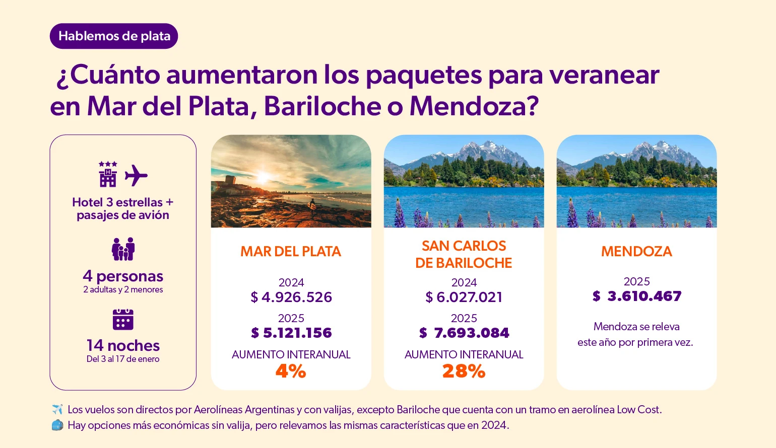 Mar del Plata, por su parte, se encareció un 4%. En 2024 necesitabas $4.926.526, mientras que este año la misma propuesta cuesta $5.121.156.
