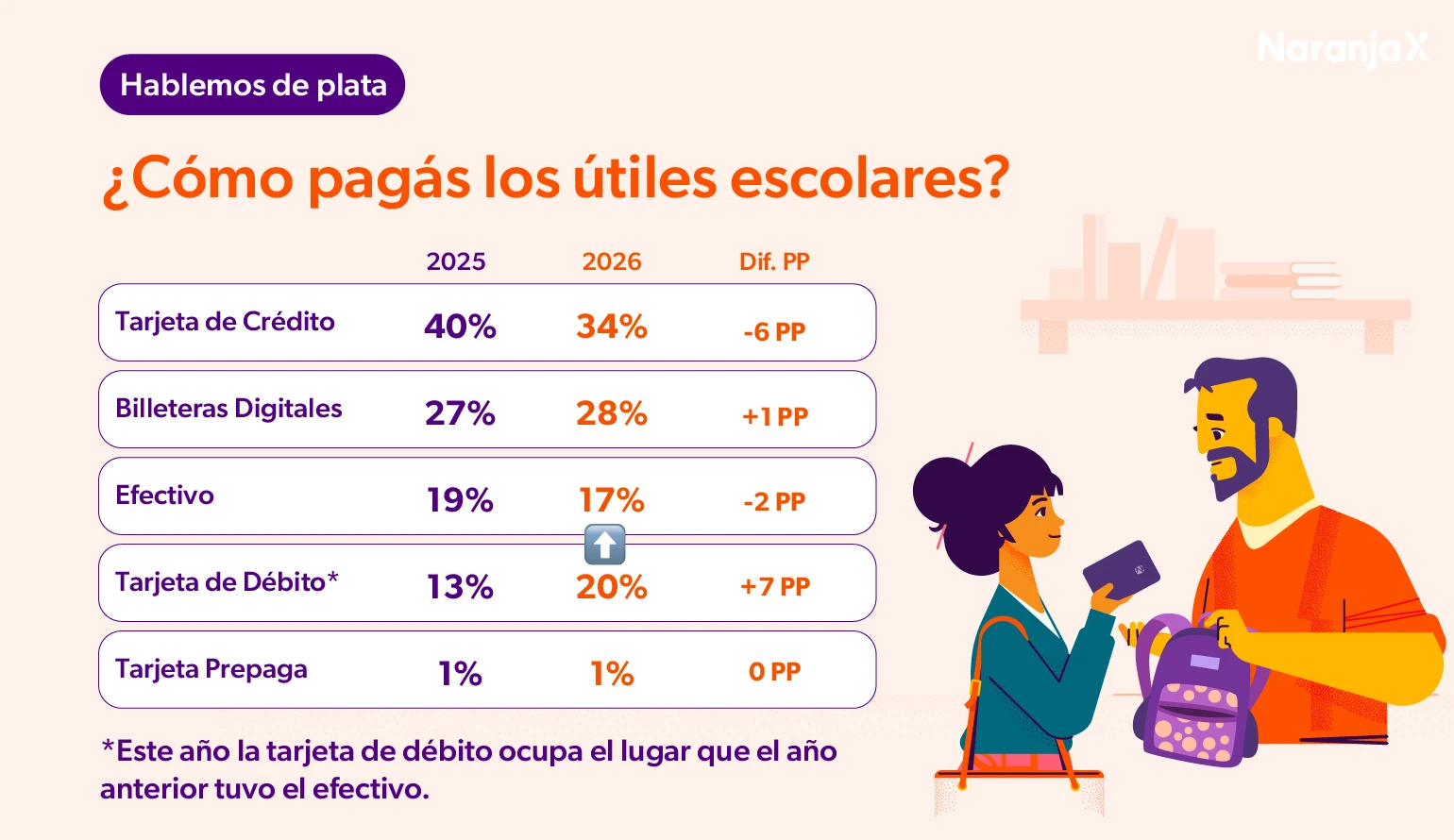 "El relevamiento también muestra que una parte significativa de las compras de la canasta escolar se concentró en la última semana previa al inicio de clases. En ese período se registró un fuerte crecimiento del uso de billeteras digitales y pagos con tarjeta de débito, apalancado por ofertas, promociones y descuentos específicos, que se consolidaron como una herramienta clave para sostener la demanda y mejorar la accesibilidad de los precios” detalló Damián Di Pace Director de la Consultora Focus Market.