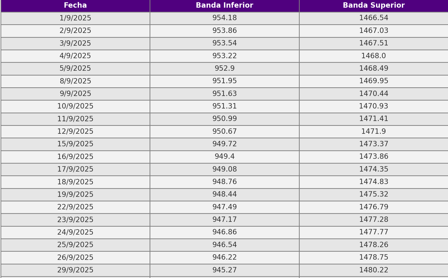 El sistema de bandas cambiarias en la Argentina se activó en abril de 2025 y estableció un rango de $/USD 1.000 a 1.400. El tipo de cambio de esta manera fluctúa o “se mueve” libremente según la oferta y la demanda, pero dentro de esos números. Digamos que el Banco Central de la República Argentina le ha marcado la cancha con límites en un ritmo mensual del -1% y +1%, respectivamente.
