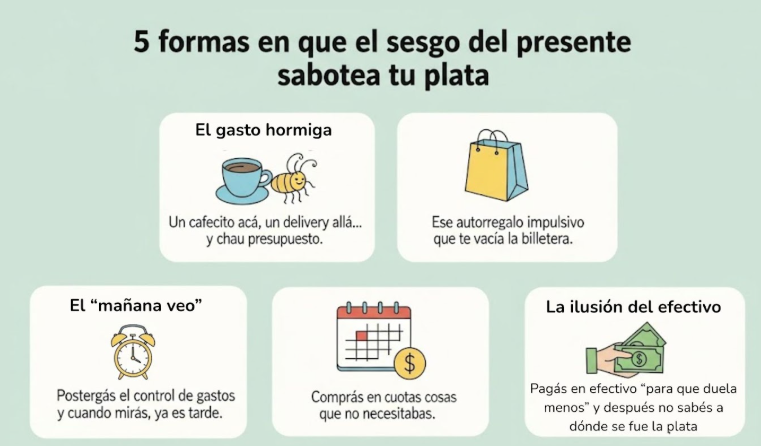 Este sesgo también se ve cuando pagás en efectivo para “que duela menos”, ignorás el resumen de la tarjeta o postergás el control de tus gastos.